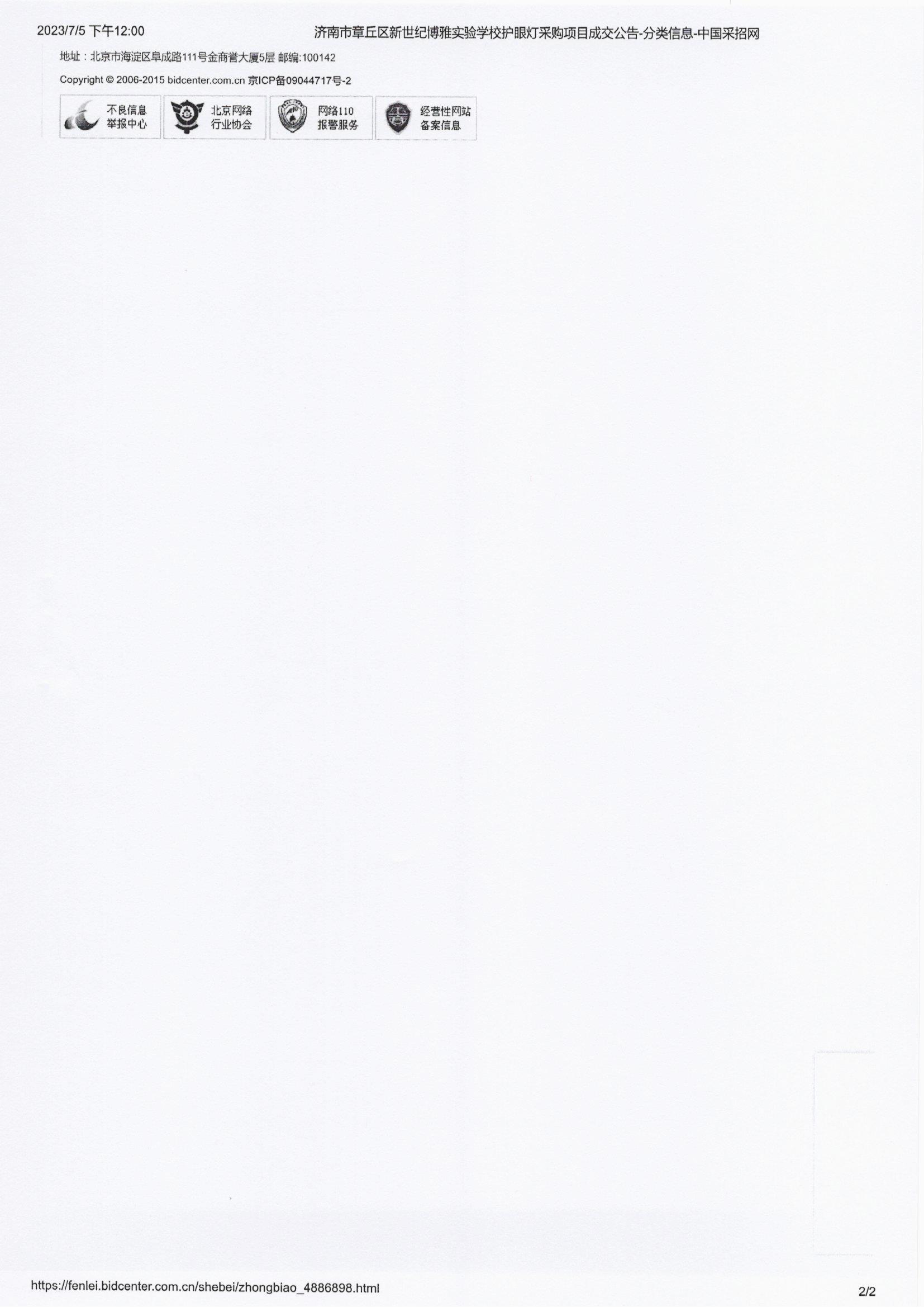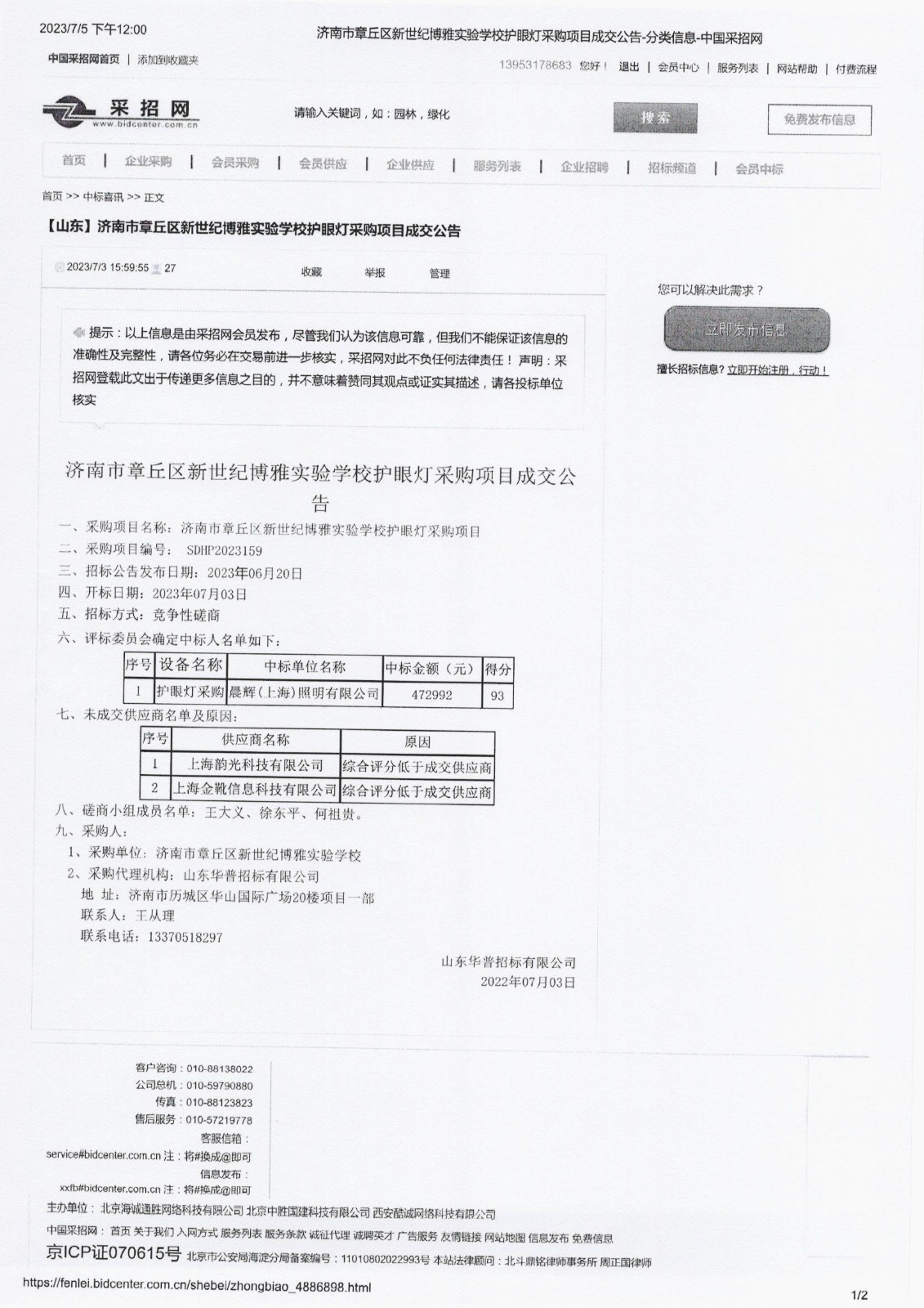 济南市章丘区新世纪博雅实验学校LED护眼灯采购项目成交公告