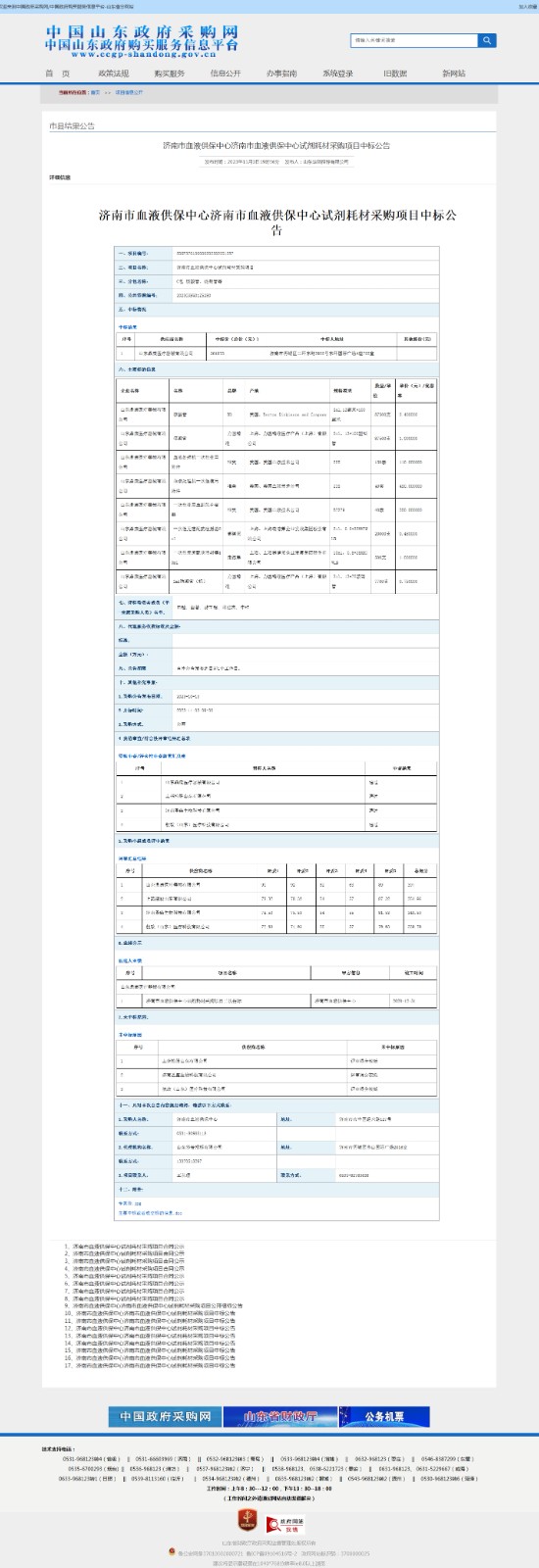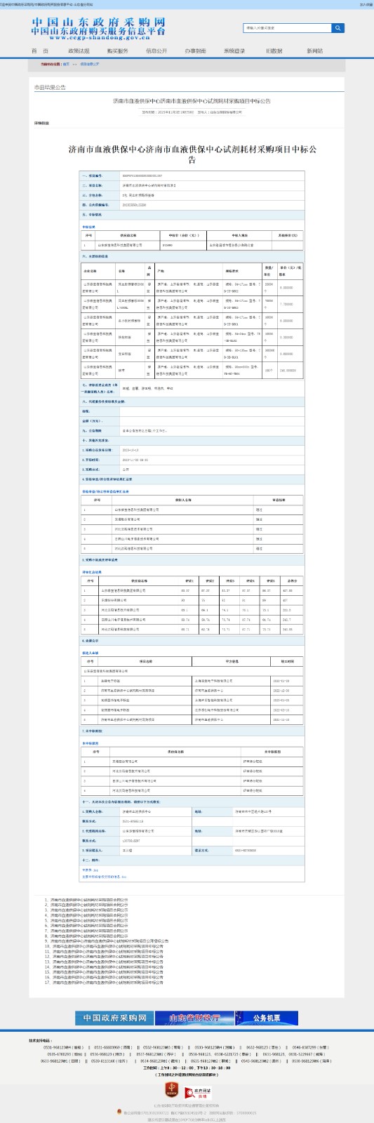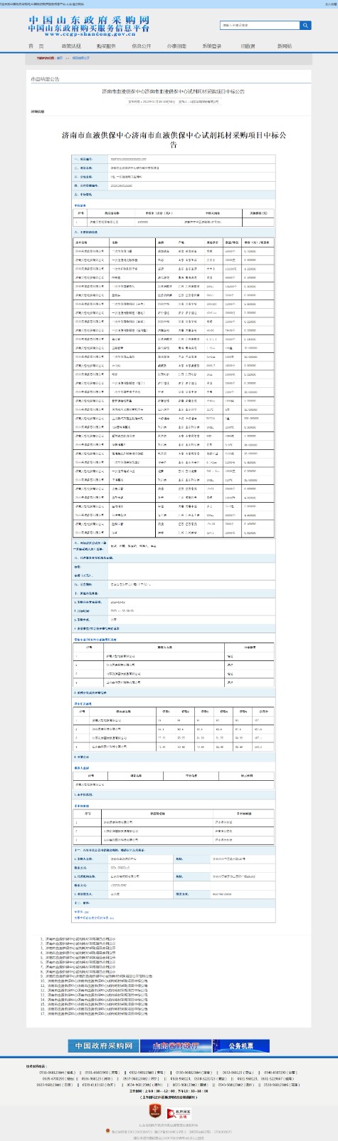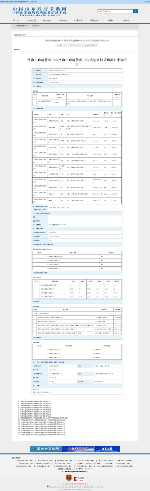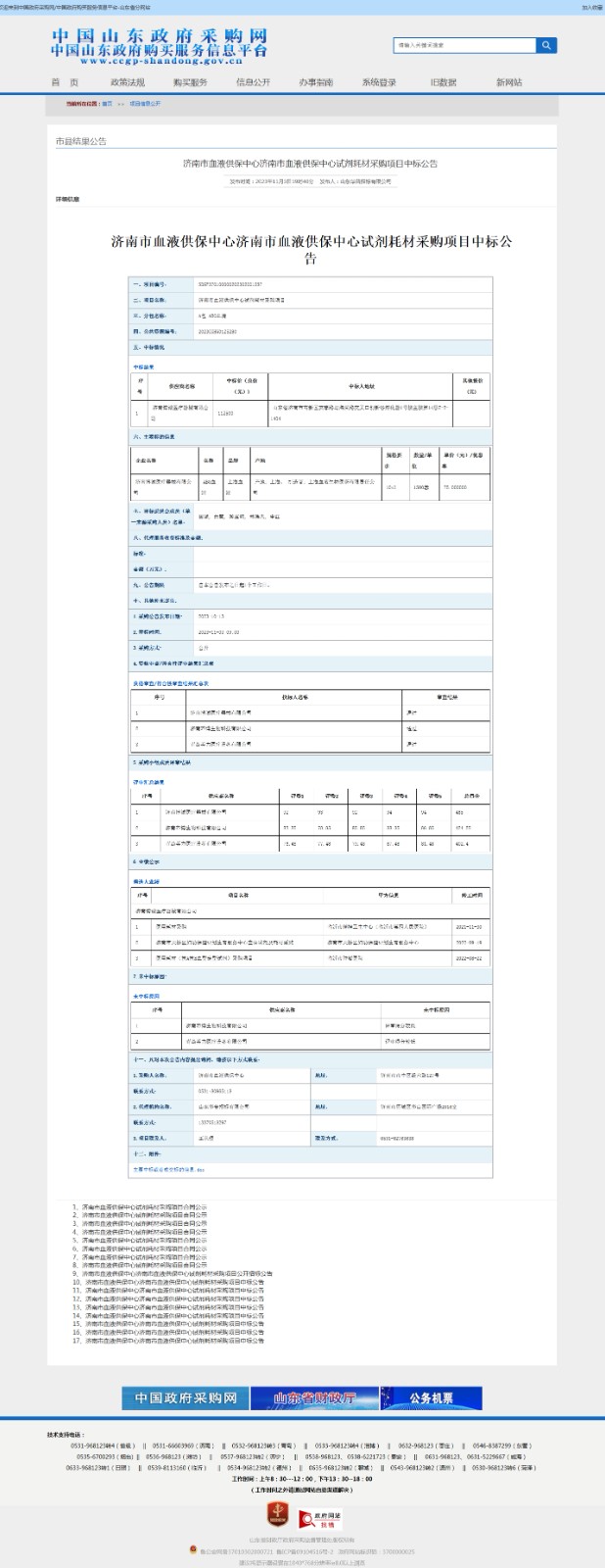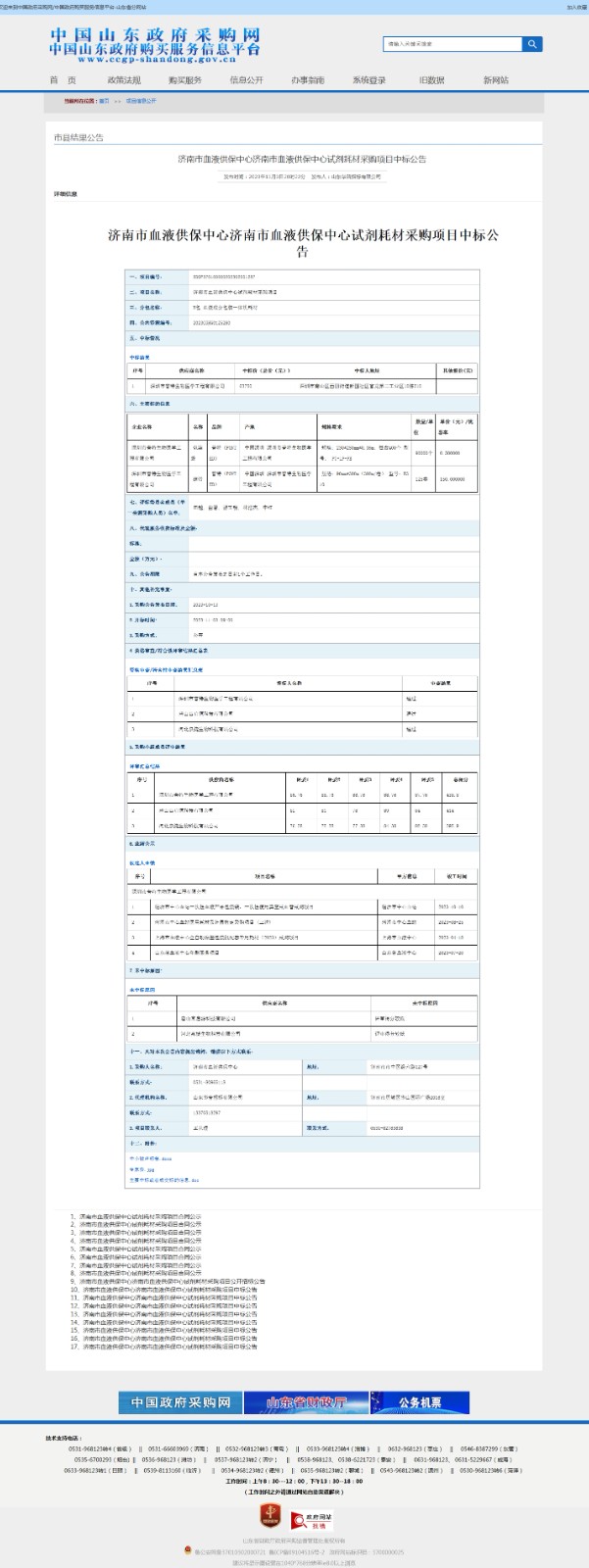 济南市血液供保中心试剂耗材采购项目中标公告