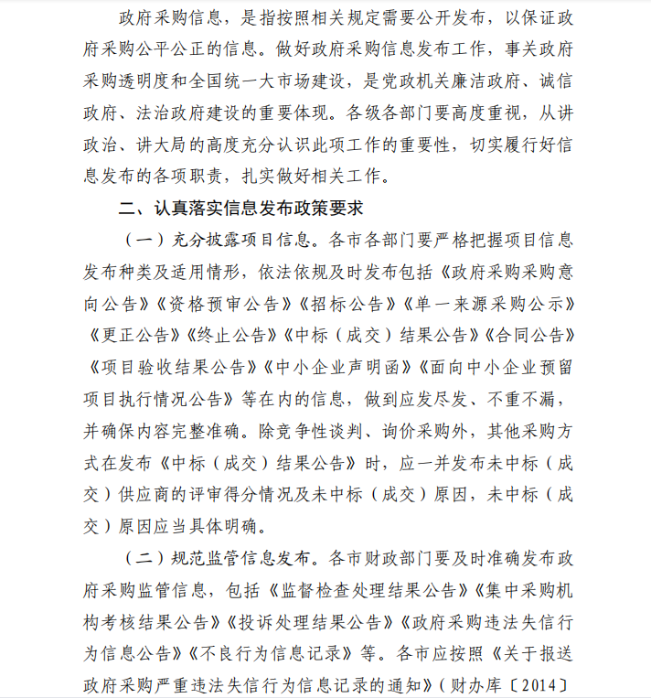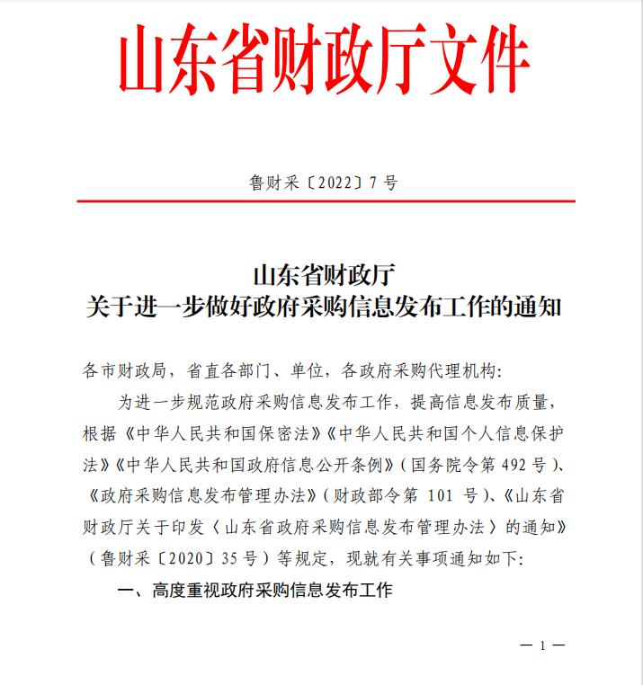 山东省财政厅关于进一步做好政府采购信息发布工作的通知